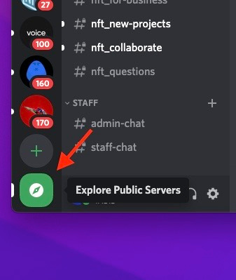 Another way to find communities of interest is to search for them within the Discord application. Once you’ve visited Discord and set up your account, you will be able to explore public servers. This can be found on the left hand column of the Discord application. Here you will be able to search for servers that fit your interests about various subject matters.